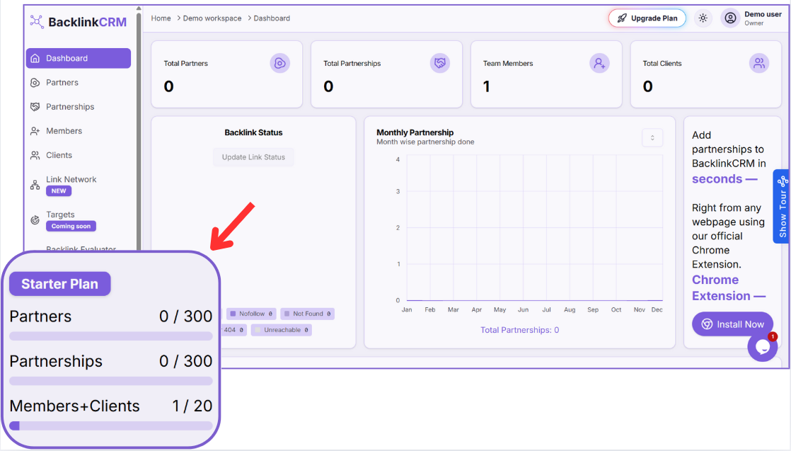 - Partnerships: Backlink partnerships created (e.g., 0/ 300)